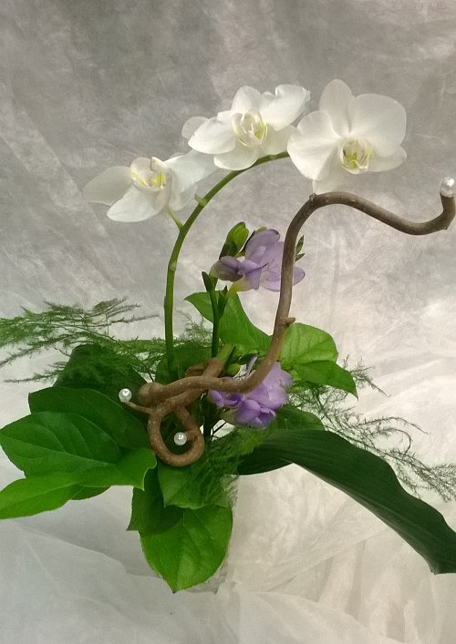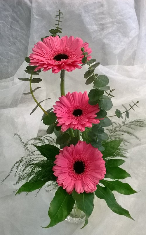 Asetelmat tehdään kukkasieneen, jossa kukat säilyvät pitkään tuoreina.